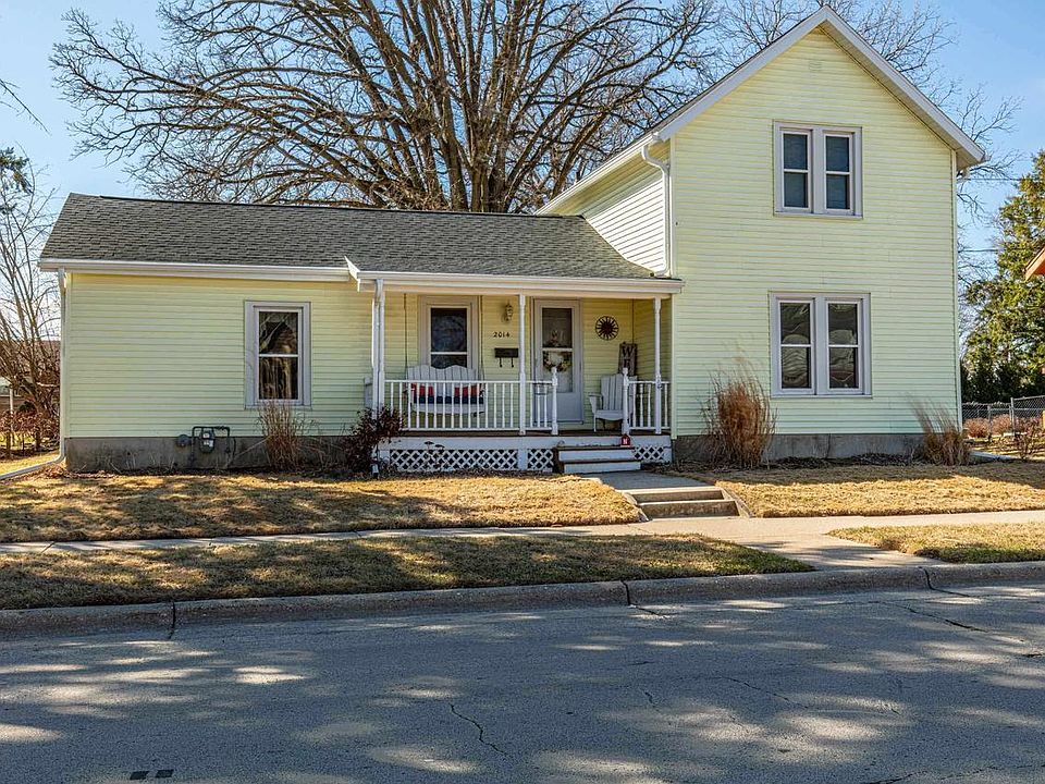 This beautifully maintained national folk home blends timeless character with thoughtful modern updates. Ideally situated near schools, parks, and just a short stroll from downtown, this four-bedroom, two-bathroom home features a spacious kitchen with recessed lighting, and plenty of cabinets for all your storage needs. Vinyl windows throughout provide energy efficiency. Recent upgrades include a brand-new roof and an expanded laundry room that adds convenience and value. The oversized two-car detached garage offers ample space for storage or projects. Step outside to enjoy a generous yard with mature trees, a welcoming deck, and an extended driveway for extra parking. If you're looking for a move-in-ready home, this is the one.
