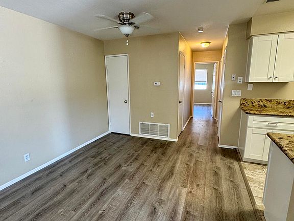 Updated 2 bedroom condo with wood-like floors & central a/c. The kitchen has granite counters, dishwasher and includes a refrigerator. The bathroom has been updated with newer vanity, mirror, and lighting. Single car shared garage & assigned parking space. Community pool and shared laundry facility. Water and trash are included. Centrally located near shopping & parks.