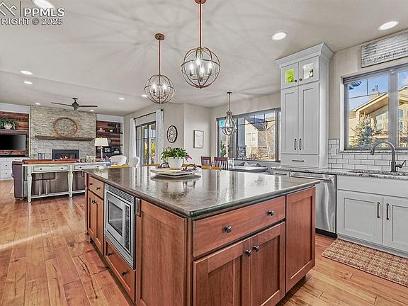 Stone fireplacePikes peak viewsSpa-inspired ensuiteCustom eden oaks built-insCorner lotCovered front porchPrimary suite