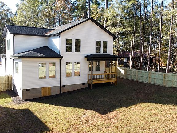 This is a charming custom-built home situated in a community with NO HOAs! A fully fenced backyard ready for your kids, pets and personal enjoyment in privacy. Walk into the cozy living room with and a zero-maintenance electric fireplace. The open kitchen includes beautiful white shaker cabinets with a grey island, white quartz counter tops, and stainless-steel appliances. The versatile dining room gives easy access to a rear covered deck that everyone can enjoy rain or shine. An office/flex room is conveniently placed on the main level. Upstairs you will find 3 bedrooms plus a rec/bonus room, and 2 full baths. The primary suite consists of a his and hers closet, a sizable master bath which includes double vanities, walk-in shower, and modern matte black fixtures. Full front and backyard irrigation system and sod in the front yard. The spacious level backyard has plenty of space for the whole family to enjoy. Minutes from I-85, restaurants, shopping centers, parks, and lake! Spend less time in traffic and more time enjoying your home with this conveniently located property.
