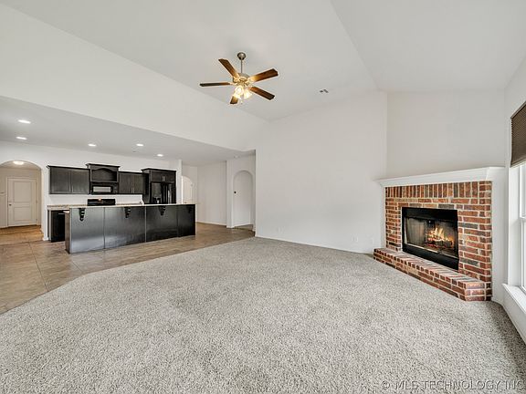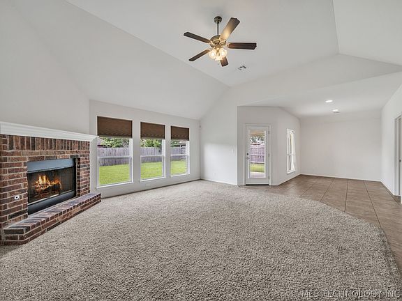 This beautifully updated, move-in ready, one-story home was built in 2013. It features full brick construction, 4 bedrooms, 2.5 baths, a 3-car garage, and spans 2428 SQFT (ch), located in the highly sought-after Providence Hills. The resort-style neighborhood is just minutes from the new Bixby West campus and a mere 20-minute drive to downtown Tulsa. The home boasts an open concept with high ceilings, crown molding, and a spacious, vaulted living room with a wall of windows that opens to the chef's kitchen. The kitchen is equipped with granite countertops, a large island with an eating bar, a coffee bar, a sizable pantry, and ample cabinets. The breakfast nook can fit a large table. The oversized master suite includes double sinks, a soaking tub, a separate shower, and a spacious walk-in closet. The split floor plan features a flex room for an office or formal dining and a fourth room that could serve as a bedroom. The backyard offers a covered patio with space for a pool, perfect for entertaining. A huge attic provides potential for a second story. HOA amenities include a clubhouse, pool, two parks, two splash pads, three fishing ponds, and a walking trail. Don't miss this one!