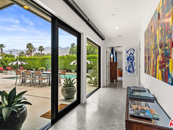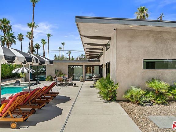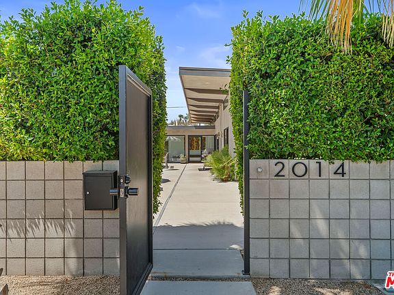Step into the timeless allure of 2014 Park Drive, a mid-century-inspired architectural masterpiece located in the heart of Palm Springs' coveted Sunrise Park neighborhood. Built in 2015, this gated, newer construction estate captures unobstructed views of Mt. San Jacinto & offers the perfect balance of privacy, sophistication, & resort-style living. Inside, you'll find sleek polished concrete floors, soaring ceilings, & walls of Fleetwood sliders that create seamless indoor-outdoor flow. Large great room is a sun-filled haven designed for entertaining, featuring a chef's kitchen w/ dual Caesarstone islands, stainless steel appliances, & built-in wine cooler all anchored by a striking linear gas fireplace & exposed post-and-beam architecture. Each of the 5 spacious bedrooms includes a private en-suite bath & direct outdoor access, while an attached casita-style suite offers a kitchenette & separate entrance perfect for guests, multi-gen living, or extra rental income. A stylish powder room serves guests. Outdoors, enjoy your own private desert resort: a 42' saltwater pool w/ 2 Baja shelves, spa, 6' waterfall, fire pit, & multiple lounge/dining areas all surrounded by lush desert landscaping & framed by mountain views. Energy-efficient & smartly upgraded, the home includes double-paned windows, Nest-controlled HVAC (3 zones), Lutron Casta lighting, Sonos sound, 2 tankless water heaters, & a Tesla charger. DSCR loan eligible with no personal income verification, this is an ideal investment or luxury retreat. One of the most lucrative short term rental in the nation per AirDNA. Fee simple land you own! The area is well below the cap for getting a new STR permit.