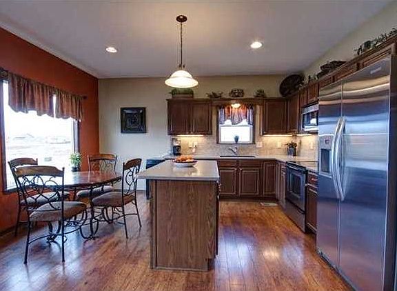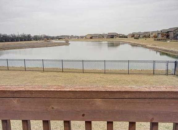 Beautiful home with great curb appeal, covered front porch and large windows, overlooking the lake! Home features a large eat in kitchen, plus formal dining, stainless steel appliances, an island, dark cabinets, under cabinet lighting, a two-way fireplace between the kitchen and the living room, rod iron for the stair rails and a deck! Your family will enjoy the huge family room with a wet bar and space for a full sized refrigerator! Both bedrooms in the basement have walk-in closets! The master has a whirlpool tub, separate shower, double sinks and a walk-in closet! The yard has a sprinkler system and an elegant rod iron fence! The home also has its own water softener and purifier! Quick access to Wichita via Kellogg or Maple and close to Wal-Mart.