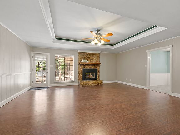 Welcome Home! This inviting 3-bedroom, 2-bath home is full of charm! Step inside to find warm wood floors, fresh interior paint, and brand-new carpet in every bedroom. The kitchen boasts elegant granite countertops, stainless steel appliances, and flows seamlessly into a flexible dining space perfect as a formal dining room or a dedicated home office. The inviting living room features a beautiful brick fireplace, trayed ceilings, and overlooks the spacious backyard, deal for both relaxing and entertaining. The large primary suite offers exceptional storage with three walk-in closets, dual vanities, and ample space to unwind. Step outside to a generous backyard complete with a large patio, perfect for gatherings, barbecues, or just enjoying the outdoors. Bonus: there’s dedicated space for boat parking! Additional updates include fresh exterior paint and a brand-new HVAC system, offering peace of mind and energy efficiency. Follows the Marcus HS feeder pattern.This home is waiting for you to make it your own!