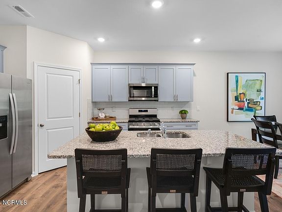Welcome to your NEW HOME in the beautiful town of New Bern, NC. The Hayden is a two-story plan with 5 bedrooms and 3 bathrooms in 2,511 square feet. The main level features a flex room adjacent to the foyer, ideal for a formal dining room or home office. The Cane Shadow cabinets and Majestic White/Valle Nevada granite has an oversized island for extra seating and a large pantry, and it opens to the dining area and a spacious living room. A downstairs bedroom with a full bathroom completes the main level which features Wooloak Vinyl flooring in all common areas, bathrooms & laundry room. The primary suite on the second level offers a luxurious Primary bath with a walk in shower, private bathroom, double vanities and two large walk-in closets. There are 3 additional bedrooms, a full bathroom, a walk-in laundry room, and a loft-style living room on the second level. Bathrooms feature Blanco Matrix Quartz countertops. As West New Bern was being designed, there was thoughtful consideration given to ensure the maximum enjoyment of our residents while respecting the natural, timberland environment. The result is a pleasing balance of winding sidewalks, walking paths and nature trails throughout the community.