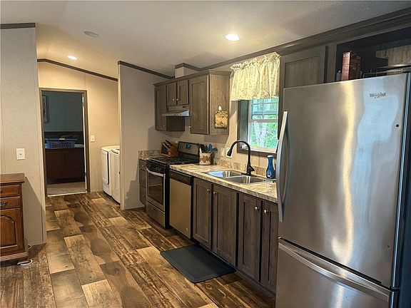 Very Sharp Home with 3 Bedrooms and 2 Full baths, Spacious Primary Bedroom has its own Bath and Walk-in Closet. Very Open Floor Plan, combining Kitchen and Living Room. Attractive Luxury Vinyl flooring throughout. Vaulted Ceilings. All Major Appliances Stay, including Washer & Dryer. Small Private Deck in back. Portable shed is included. Very Reasonable Lot Rent of $430 per Month includes:Water, Sewer & Garbage. All Offers Must be Subject to Park Approval. Homeowner requests 24 hours notice for showings. In order to remove excitable dog. Please make Offers Good for 24 Hours.