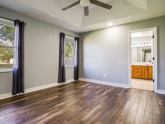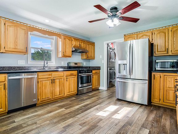 Updated 3 Bedroom 2 Bath Cul-de-sac Home with Open Floor Plan and Huge Fenced-In Backyard! The large great room has a gas fireplace and is open to the kitchen area which makes for great entertaining. The Kitchen features stainless steel appliances (new gas range) which are included, newer countertops with a breakfast bar and a breakfast nook area. The laundry room has cabinet storage and the washer and dryer are included. The owner bedroom has a trey ceiling, walk-in closet and owner on-suite with jetted tub and separate shower. Backyard has a nice sized trex deck for low maintenance and large sitting area to enjoy the private backyard. There is a new shed with overhead door ande shelving for all of your storage needs. Grill & Ring Camera stay. Don't miss this great home with wonderful outdoor space!