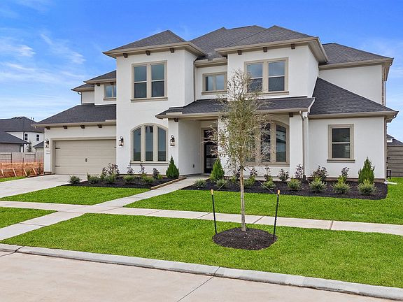 This home features a beautiful contemporary stucco elevation with a front porch and double front doors. Stepping inside, you'll find soaring ceilings, a sweeping staircase, and an extended foyer. The formal dining room connects to the kitchen through a butler's pantry, making entertaining a breeze. This home offers space for everyone with 5 bedrooms and 5 1/2 baths! The primary retreat contains a sitting area with a panoramic view of the enormous backyard. One secondary bedroom is conveniently located on the first floor, perfect for a nursery or guests. Take the back staircase to the spacious game room and media room, making it an ideal area for entertaining. This 3 car garage home is everything you could wish for. With high-end finishes and smart home technology included, you don't want to miss this home. Make an appointment today!