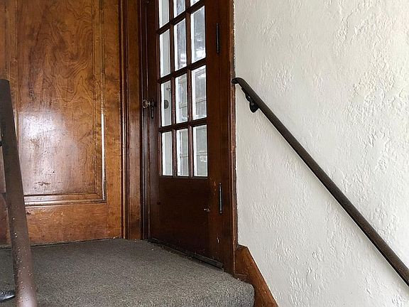 IMPROVED RENT LOWER unit with front door access hallway. Original charm woodwork and brightly colored walls show historical quality and craftsmanship. Separate dining room. The updated kitchen has granite countertops with backsplash and beautiful cabinets. Kitchen comes equipped with fridge and stove. Laundry room in basement, washer/dryer not included. Water utility included in rent. Separate mailbox for upper unit. Street parking only, parking lot space available extra. Family area.