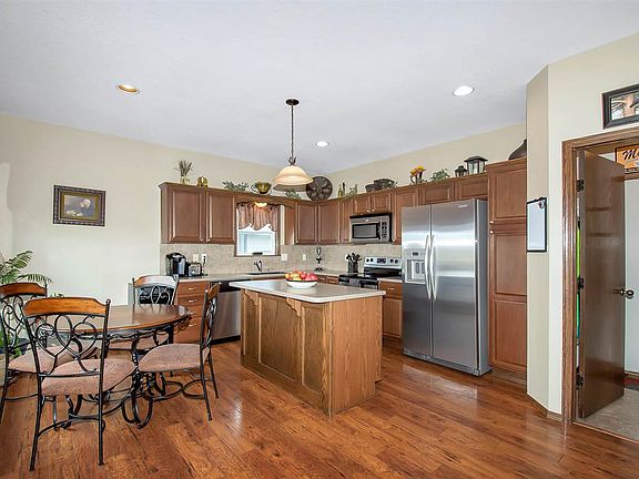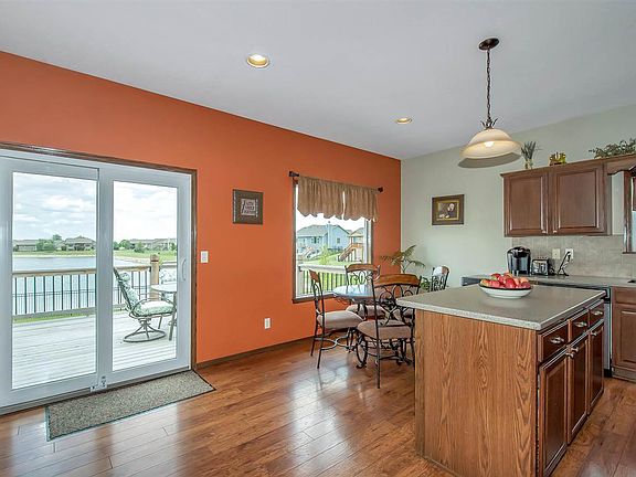 LAKE LOT! Beautiful 5 Bedroom, 3 Bath Ranch Home on the Best View of this Lake! Luxury Bath with Sept Whirlpool Tub and Shower, 2 Sinks and a Walk- In Closet! HUGE 19 ft Kitchen/Hearth Room has an Island, Stainless Steel Appliances, Corian Counter Tops, Under Cabinet Lighting, Breakfast area & a 2 way Fireplace w/ built-in Book Shelves! Formal Dining Room w Tray Ceiling & Pillars, Main Floor Laundry/Mud Room, Wrought Iron Railing, Coffer Ceiling in Master, Lots of Windows! Finished, View-out Basement has a 34 ft Family/Rec Room, Full Wet Bar, 2 Large Bedrooms w/ Walk-In Closets, 3rd Bathroom and Storage! Whole House Water Softener & Water Purifier! Lovely Landscaped Yard has Sprinklers, Sod, Newer Deck and a Wrought- Iron Fenced in Back Yard! Must See!!