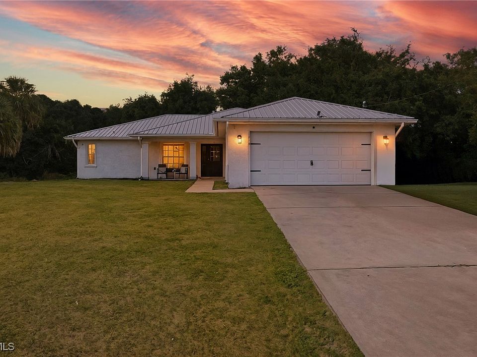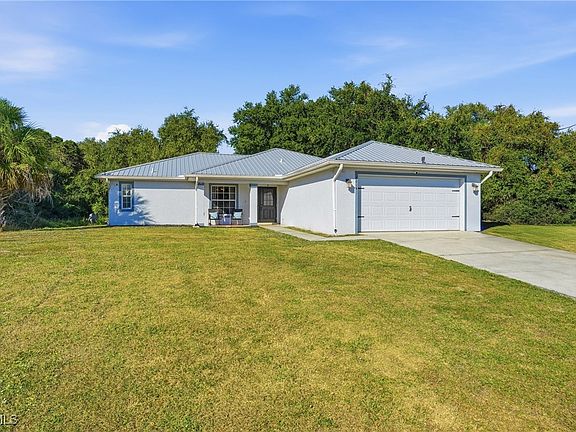 Beautiful 3-bedroom home offering comfort, space, and a peaceful setting in LaBelle! This inviting property sits on a spacious lot surrounded by trees, providing privacy and a serene setting. The home features a durable metal roof, a welcoming covered front porch, and an extended driveway leading to a two-car garage. Inside, you’ll find an open-concept layout with high ceilings, abundant natural light, and a spacious living area perfect for both relaxation and entertaining. The split floor plan offers a private primary suite, while the additional bedrooms provide flexibility for family, guests, or a home office. Enjoy true Florida living on the screened-in lanai with peaceful views of the backyard and surrounding greenery. Conveniently located near schools, shopping, and local amenities—this home is a must-see!