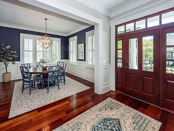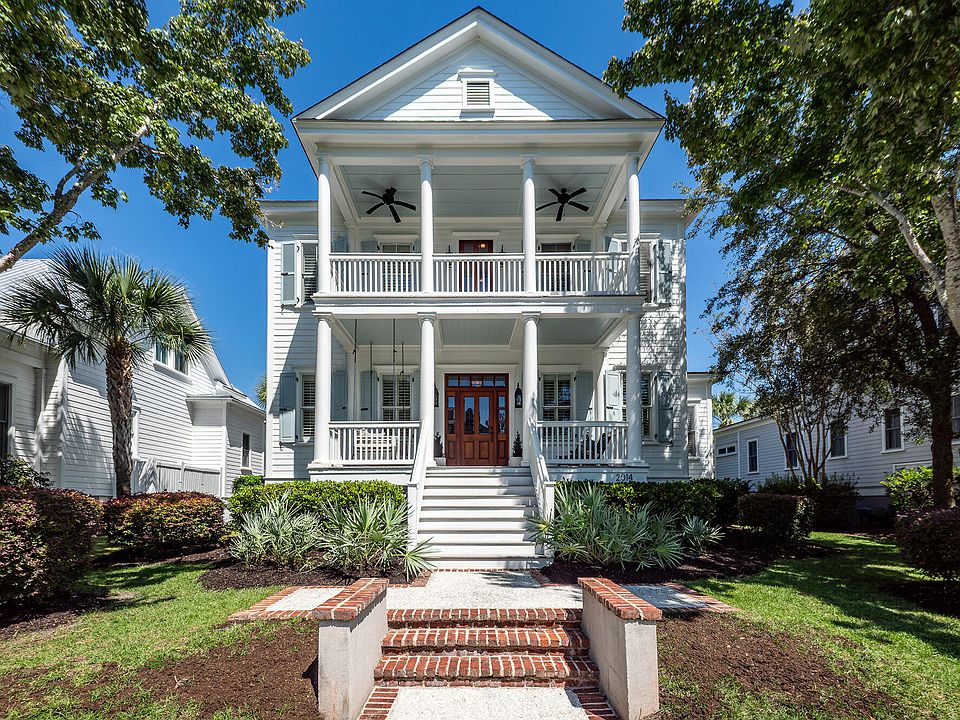 Welcome to this southern charmer situated right in the heart of Daniel Island next to beautiful Smythe Lake and just a half block walk to Daniel Island School. A one-of- a-kind gem, built by Southcoast Builders which boasts five bedrooms in the main house plus a sixth bedroom in the FROG. This custom build has high quality features throughout: solid mahogany exterior doors, custom closets, chestnut kitchen cabinets, and a beautiful main hall built-in bookcase, to name a few. A recent full renovation of the primary bath features beautiful tile and a huge free-standing tub. Ten-foot ceilings on both levels provide a spacious living experience, and custom wainscoting/trim throughout are truly elite. Kitchen updates include new backsplash, quartz countertops, and new appliances. See notes: