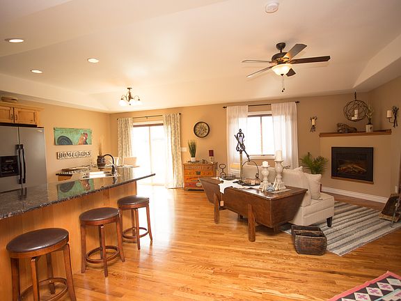 Absolutely stunning home with 5 bedrooms, 3 bathrooms, and 2 offices on 2 acres with beautiful landscaping and an expansive 40' x 60' shop. An open floor plan with oak hardwood floors, fireplace, and granite throughout the kitchen and bathrooms make this home comfortable yet refined. The basement sets this home apart with an incredible wet bar and open space to entertain for just about any event including those game day parties! This home is an absolute must see and gives you the luxury of country living just a minute from town! Bent & Rusty Cotton Company has provided new, unseen inventory to stage this home. Stop by to check out the home of your dreams along with some great décor!