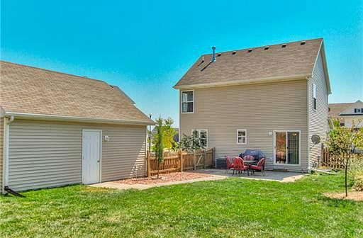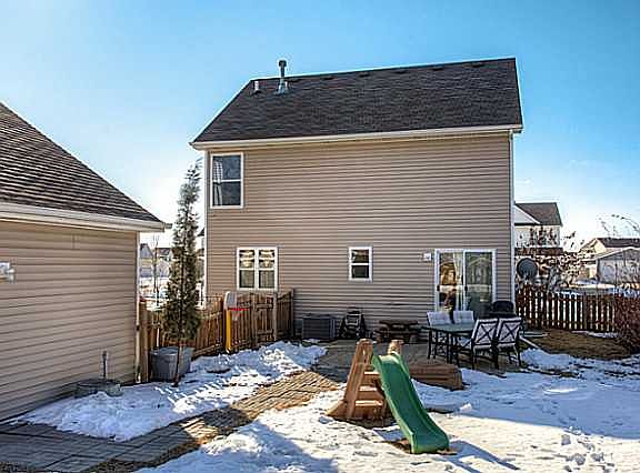 You will love spending time on your front porch this spring enjoying this friendly and quiet street. Home features an inviting entry way with an open living room and dining room. The kitchen includes all appliances and offers updated flooring. Although the basement is currently unfinished it makes for a great workout room or play area for the kids and could be easily finished if desired. The back yard is fully fenced and features a custom stamped patio and large detached garage. This is a great neighborhood with a unique architectural feel that is a great way to own an affordable newer construction home without the cookie cutter feel.
