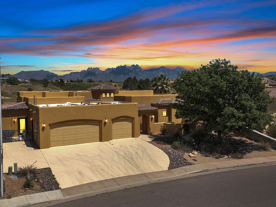 **NEW CARPET** This Solar powered home has breathtaking views of the Organ mountains with an east facing backyard, Perfectly positioned right on the Sonoma Ranch golf course. This stunning 3,408 sq ft residence sits on .29 of an acre. This beautifully designed home features a spacious three-car garage, four generous bedrooms, and two and a half bathrooms, offering ample space for both everyday living and entertaining. The main bedroom provides endless space with a luxurious ensuite bath, featuring a relaxing garden tub and walk in shower and a large walk-in closet. The heart of the home is the Gourmet kitchen, with granite countertops, an island and all appliances included, and a built-in wine cabinet, perfect for hosting or enjoying quiet evenings at home. Just off the main living area, step into your very own movie theater room. Step outside and you'll find a backyard oasis unlike any other. With panoramic views of the golf course and those organ mountains!