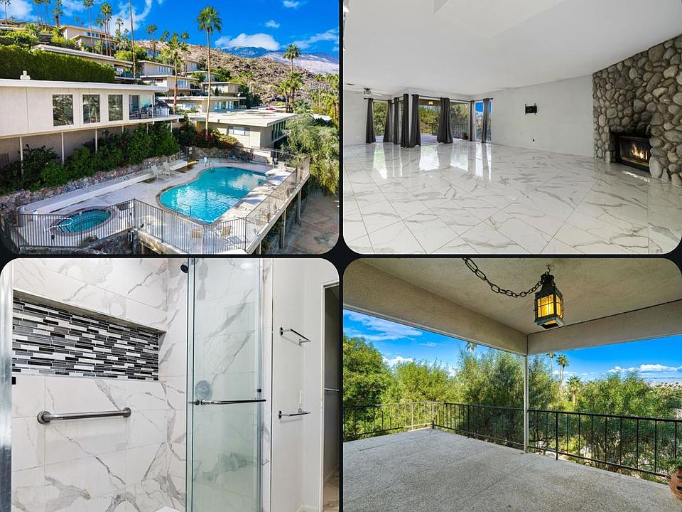 Great midcentury fixer with huge upside in iconic Rimcrest. This light-filled 2 bedroom, 2 bath condo (plus den) sits on the Southridge hill with sweeping Coachella Valley views and a spacious private terrace perfect for sunset evenings and entertaining. The classic mid-century bones are here: walls of glass, open living spaces, and connection to the outdoors. Renovate and modernize the kitchen and baths to unlock true value, or convert the generous den into a third bedroom for added rental or resale appeal (confirm permits). Residents enjoy two pools and three spas, native rock landscaping, shaded walking paths, and some of the best panoramic views in Palm Springs. Located just below the famed Hope Residence on Southridge and a short drive to downtown Palm Springs, dining and shopping on Palm Canyon Drive, this is a rare opportunity to own in a historic mid-century enclave.