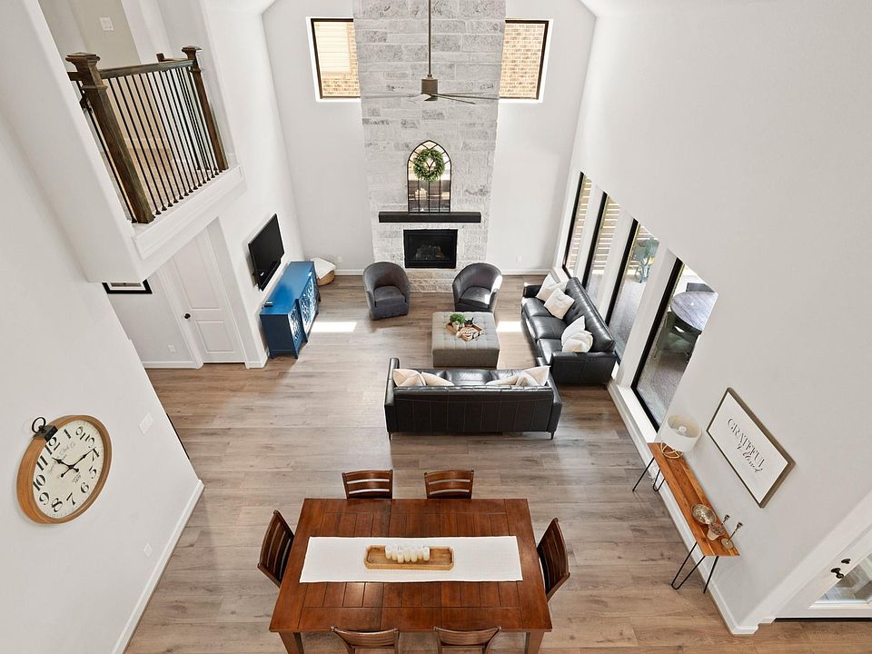 Terrific 5-bedroom,4 1/2 bath, '21 Perry home.Island kitchen open to family room w/ floor to ceiling stone fireplace w/ gas logs,windows overlooking the spacious covered patio, & cozy firepit.Kitchen boasts double ovens,5-burner gas cooktop,farm sink, & a plethora of counterspace & cabinets.Primary bedroom downstairs w/ bay window, overlooking patio.Primary bathroom w/ double vanity, soaking tub, separate shower, & 2 walk-in closets.Second bedroom down w/ full bath.Formal dining room-great place to entertain family & friends. Enclosed study provides a quiet space to study/work.Upstairs you'll find 3 bedrooms all w/ walk-in closets, & 2 full bathrooms.Media room, wired for surround sound, you'll feel like you're in the movie or at the game!Game room will fit a ping pong table or pool table.This home is GREAT for entertaining.Close to neighborhood park.Neighborhood boasts trails, two pools, tennis and pickleball courts, playgrounds, and fitness center.Close to I-10, shopping, & dining.