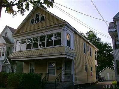 Well maintained 2 family with 2 bedrooms and 1 bath per flat ... $1650 per month income with one lease coming due soon if your interested in a owner occupied flat .. Tenants paid separately for utilities . .and there is a detached 2 car garage ... outstanding location and this property is in excellent condition