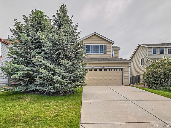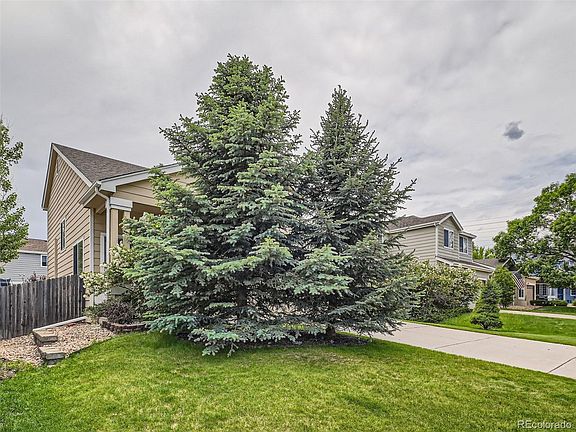 and built-in bookshelf is just the place to relax and unwind. You can step out of the kitchen onto a generous deck perfect for barbecues which opens to an expansive backyard, ideal for playing and entertaining. Outdoor space includes a wooden shed for additional storage. Mature trees cover the landscape for added shade and privacy. The second floor is home to an updated primary bedroom and bathroom, guest bathroom, laundry closet plus two additional bedrooms, one with a walk in closet! The master bath hosts a double vanity as well as a shower with an oval tub and toilet for added privacy. All the bedrooms are suitable sizes! New: paint, granite countertops, stainless steel appliances, and refinished showers, newer: carpet, furnace, roof, a/c. Easy highway access close to dining, shopping, Buckley Air Force Base, Southlands Mall and just 20 minutes to the airport; 3-minute walk to nearby greenbelt and biking path.