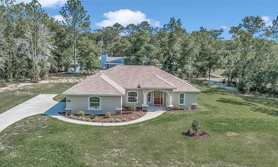 Pool Home On 1.06 Acres In The Woodlands of Rainbow Springs, The Community Offers Resident Only Rainbow River Beach Park Access Along With Tennis Courts, Walking Trails, Fitness Room In Community Cente, The HOA Fee Is Only $236.00 Per Year. Open Concept Home Built in 2021 Offers 3 Bedrms, 2 Bths & 2 Car Garage. The Great Room & Kitchen Are Light & Bright. The Bank Of Windows In The Kitchen Over Look The Large Screen Enclosed Pool Area. The Pool Has A Water Feature, There Are Several Sitting Areas In The Enclosed Pool Area Including The Area Directly Off Of The Primary Bedroom That Is Accessible From SldGl Door. Tray Ceilings In All Bedrooms. The Home Is Light & Bright W/Several Sliding Glass Doors To Pool Area. Interior Laundry Room W/Access To Garage. Enjoy The Country Feel Of The Neighborhood W/Easy Access To Dunnellon Shopping Areas, Historic District, River Boat Access, Walking Trails That Can Take You All The Way To Tampa. World Equestrians Center Is A 20 Minute Drive, Ocala, Crystal River Are All Within 30 Minutes. This Home Has Neutral Colors Ready For You To Place Your Personal Touch To Make This Your Home.