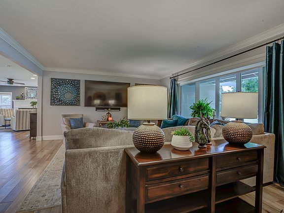 All three bedrooms are thoughtfully designed for comfort, featuring plush carpet, upgraded baseboards, modern ceiling fans with remotes, and ample closet space. The primary suite opens to its own private covered patio with skylight and shade wall, and includes a spa-like en suite with a floating dual-sink vanity, tiled shower with glass doors, wood plank ceiling, and custom storage.