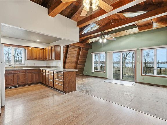Tucked into the quiet charm of Comstock, this acre-plus retreat delivers over 100 feet of shoreline on Staples Lake—a 340-acre haven for fishing, boating, and laid-back lake life. The walk-out basement, 23x32 detached garage, and water-facing deck set the stage for peaceful mornings and golden-hour gatherings.
