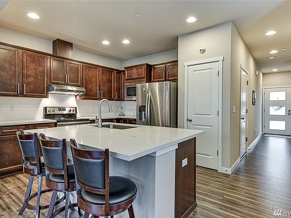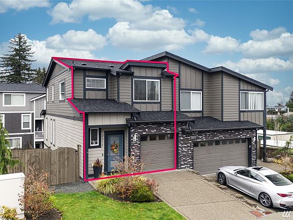 Like new condition on corner homesite at Alpine Heights. Large "relaxing" covered deck accented with Mt Baker and territorial views. Great room design with an open kitchen that has quartz counters, pantry, and SS appliances. 2 bedrooms on the upper level-each have separate bathrooms and a walk-in closet for the master. 3rd bedroom or family room option+ work and office space on the lower level. Beautifully fenced and landscaped rear yard with sprinkler system. All appliances including washer and dryer. Playground and sports court for the community. Minutes away to I-5 North or South, Everett Mall, and Boeing.