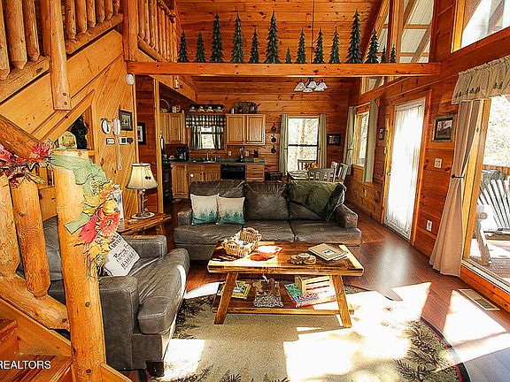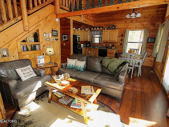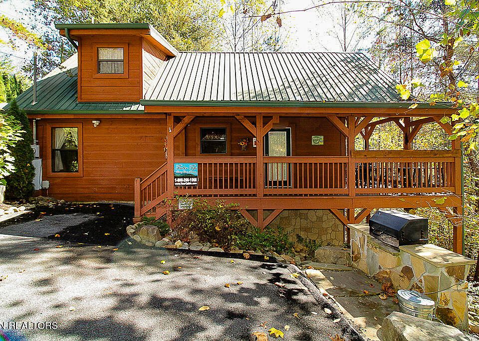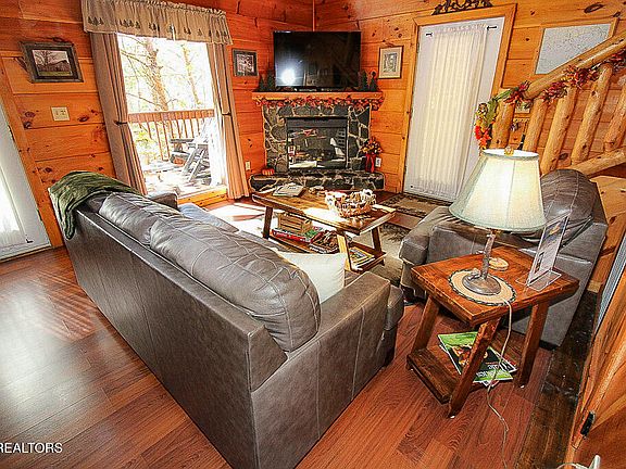 Here it is. A beautiful log cabin secluded on a private, wooded acre offering coziness and lots of comfort. But you would never know that it is a simple short drive to Gatlinburg, Pigeon Forge, Sevierville, and the Great Smoky Mountains. The best of both worlds at your fingertips. This gorgeous 2 bedroom and 2-1/2 bath cabin is all you need; whether you want it for yourself or you want an investment rental cabin in the Smokies area; or a little of both. Many unique features will be noticed as you stroll through the cabin. As you enter you will immediately feel at home in the mountains with a beautiful fireplace in the living area, and openness to a fully furnished kitchen and dining area. Also, on the main level are both bedrooms with two bathrooms. The primary bedroom has its own bathroom and a separate whirlpool tub along with furniture to make you feel at home while you are away from home. Ample space but not wasted space. The second bedroom offers coziness featuring an electric fireplace to make the nights warm and wonderful. If you are interested in playing games, the upper level fits the bill. Not only do you have a classic pool table and video game machine with a bunch of games, but you have a few special features - a half bath and a wet bar including a mini-refrigerator to save you from having to make trips back down to the main level. Thus, no interruptions in your fun and games. And there is ''tucked away'' storage available for you on the upper level. These special features are seldom seen in other cabins. The décor throughout the cabin gives you a warm, comfortable, and happy feeling. - tastefully dec orated.The deck is also a great place to ''hang out''. It features a six-person hot tub, rocking chairs, a bar table with stools, and privacy - lots of privacy. What a great place to relax. This cabin location is nothing short of ideal. No traffic, no noise, and no interruptions to enjoying the mountains.
