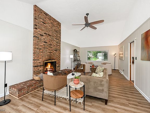 Step inside to find new luxury vinyl plank flooring, fresh carpet, and updated paint throughout ('25). The main floor features a welcoming front porch, a spacious living room, a family room with vaulted ceilings and an impressive brick-to-ceiling fireplace, a dining room, and an airy eat-in kitchen with plenty of natural light, perfect for everyday living and entertaining.