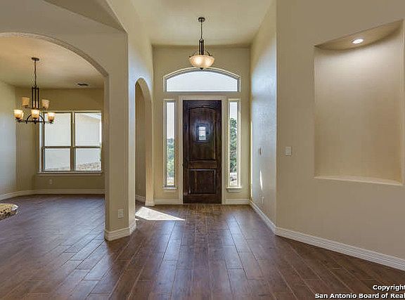 New Home Construction*Energy Efficient W/Foam Spray Insulation*Completed and Ready to Move In**Mediterranean Style*Open Floor Plan*12 FT Ceilings*Tile Looks Like Wood Main Areas First Fl*Kitchen Island*Secondary Bedroom Down W/Full Bath*Texas Size Pantry*Master Walk-In Shower**Great Views**Close To Smithson Valley Middle and High Schools*Easy Access to San Antonio*New Braunfels **Austin**