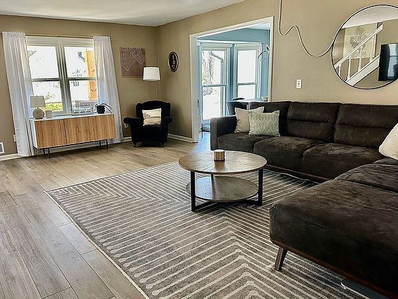 Inside, you’ll find a renovated kitchen with stainless steel appliances, updated cabinetry, quartz countertops, and modern lighting, flowing seamlessly into open living and dining spaces featuring luxury vinyl plank flooring throughout. Bathrooms have been thoughtfully updated, and the home has been meticulously maintained by the owner. The entire house boasts brand new windows, replaced in 2025, that fill each space with natural light.