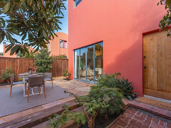 A thoughtfully designed site condo that lives like a single-family residence while sharing a lot with only one other exterior property. Built in 1999, the home blends clean architectural lines with rustic modern elegance, creating a private retreat in the heart of the city inspired by architect Ricardo Legorreta. The home opens to a tranquil front courtyard, an inviting outdoor space ideal for entertaining or quiet relaxation. From here, the courtyard flows seamlessly into the ground-level kitchen and dining area, blurring the line between indoor and outdoor living. Upstairs, a dramatic living room with soaring 16-foot ceilings anchors the home, complemented by a tiled balcony that offers a second private outdoor setting. This level also includes a bedroom, a full bathroom, and storage. Open stairs lead to a spacious loft that overlooks the living room below, creating a versatile space for work, creativity, or guests. A third outdoor area, accessed directly from the loft, completes the home’s unique indoor-outdoor experience. With a washer and dryer, carport and driveway parking, and a low-maintenance HOA covering only shared water costs. Ideally located just off Shattuck Avenue, moments from shops, dining, transit, and cultural destinations. Home energy score is 4.