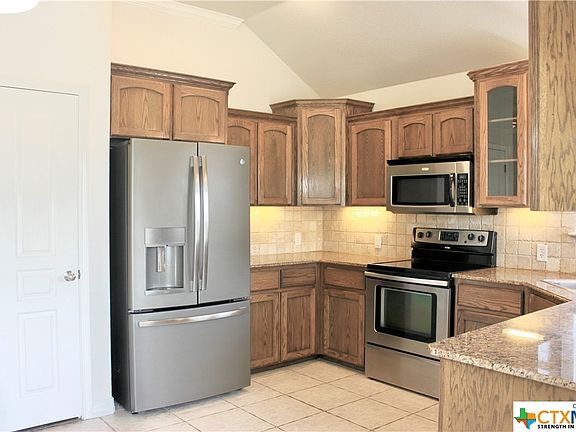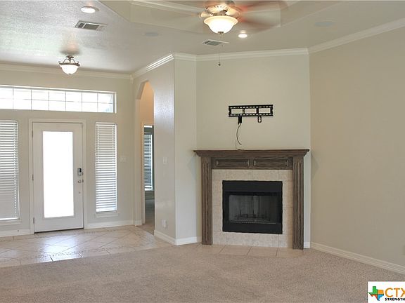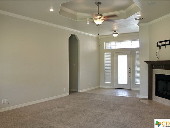 Gorgeous Harker Heights home under $300,000!!! This home offers 4 bedrooms, 2 bathrooms with high ceilings and an open concept living area. The primary bedroom has gorgeous windows and a ceiling fan. The bathroom has a double vanity, jetted tub, separate shower, and two walk in closets. The 3 remaining bedrooms area all great sizes as well, two having walk in closets. The kitchen has granite counter tops, wood cabinets, stainless appliances, and a corner sink with a window. The living room is huge with high trey ceilings, a wood burning corner fireplace, and a wall of windows to the back yard. Out back is a large covered patio, good sized yard, and big storage shed. Knights Way subdivision is close to Harker Heights High School , Neighborhood Walmart, and the Harker Heights Community Park.
