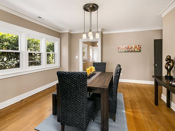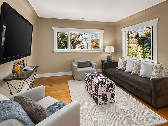 Spacious & elegant home features SW exposure that offers ample natural light, an updated Kitchen w/ SS appliances & gas cooking, hardwood floors thru-out main level, a wood burning FP, a generous back deck with hot tub, new wiring, plumbing & gas furnace with A/C, & plenty of storage. Dog friendly (no cats) inc fully fenced yard, hose bib w/ hot & cold for pet washing, kennel in rear of garage complete w/ dog door, heater & window. One car garage along with 2 off-street tandem pkg spaces.