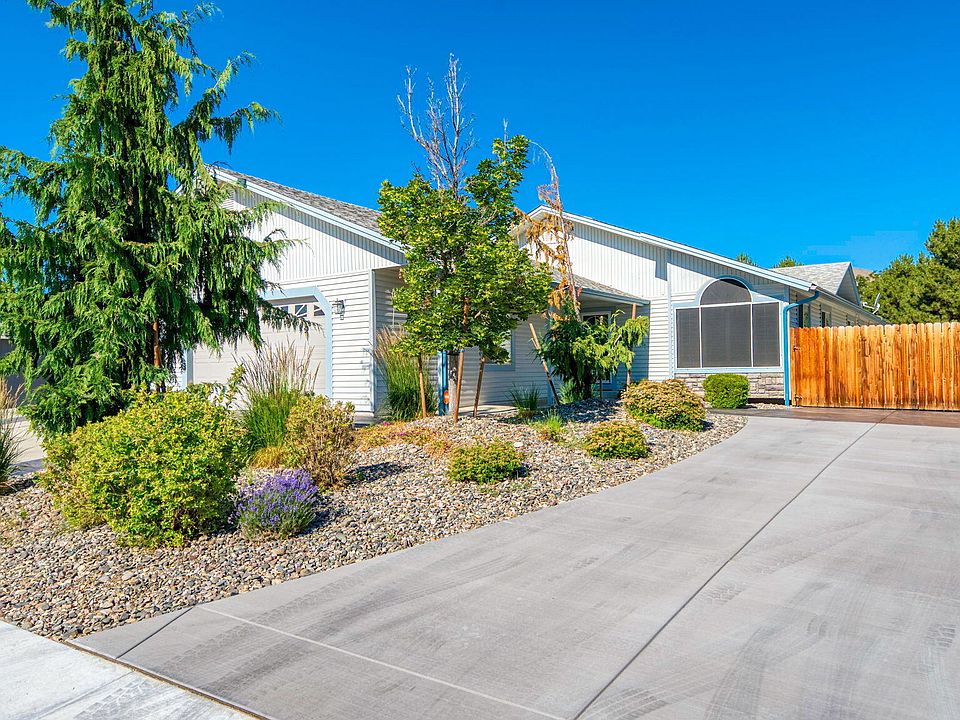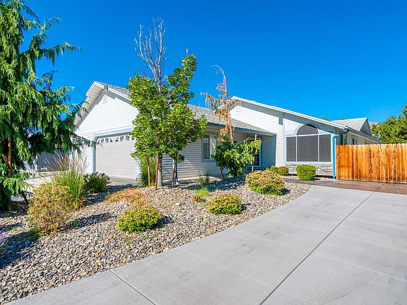 Welcome to 2015 Flycatcher Drive — a beautifully maintained single-story home in the desirable Eagle Canyon community of Spanish Springs. Built in 1998, this 2,244 sq ft residence offers 3 bedrooms, 3.5 bathrooms, and a smart, comfortable layout perfect for everyday living and entertaining. At the heart of the home is an open-concept kitchen with a center island, tile countertops, and generous cabinetry, flowing into spacious living and dining areas. A dual-sided fireplace adds warmth and charm to both the living and family rooms. The primary suite features a walk-in closet and en-suite bath with dual vanities and a soaking tub. One of the secondary bedrooms is also a private suite with its own full bathroom, offering ideal accommodations for guests or multigenerational living. A third bedroom and additional half bath provide even more flexibility for family or workspace needs. Situated on a 0.34-acre lot, the fully fenced backyard offers privacy and low-maintenance landscaping. Unmatched parking and storage: Attached 3-car garage (952 sq ft), finished detached 3-car garage shop (1,052 sq ft), and a detached 3-car carport — over 2,100 sq ft of covered space with room for RVs, boats, trailers or hobby space. Located in a quiet, established neighborhood close to parks, schools, and shopping — this property checks all the boxes! It is truly a must see!