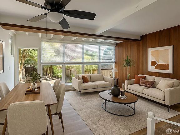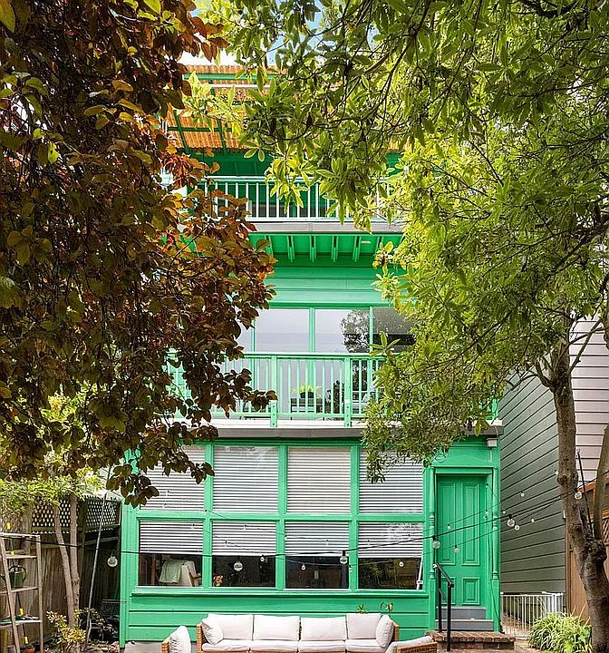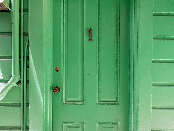 The one bedroom apartment is located on the first floor of a charming Victorian on a slow street. The unit has its own front door and street number for mail and packages. It features mid-century style interior decor, wooden panels, and floor-to-ceiling windows. You will enjoy waking up every day looking out to a lush green yard outside of your sitting area.