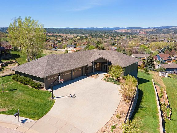 Views don't get much better than this in Rapid City! Breathtaking views of the Black Hills are what you will wake up to each day! Walk into luxury throughout this home. The formal dining area, complete with built-in lighted cabinetry, adds a touch of elegance, perfect for entertaining guests. The living room, with its expansive picture windows, fireplace and vaulted ceiling is an ideal spot for relaxation and enjoying the stunning surroundings. The gourmet kitchen, featuring a 6-burner gas range and modern appliances, is likely to impress culinary enthusiasts. The luxurious primary bedroom and beautiful en-suite bathroom, complete with a double vanity and walk-in shower, offers a perfect retreat. With two additional bedrooms and a convenient bathroom, the layout is ideal. The 3 car garage with an extra workshop area along with the walkable crawl space gives plenty of room for storage. Easy living is here with no steps & zero entry. The crawl space has the possibility to be finished.