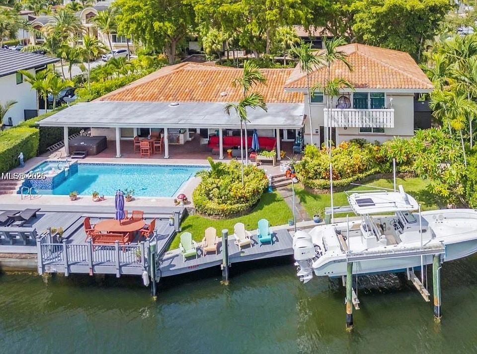 SANS SOUCI ESTATES Waterfront oversized lot for a 100 foot yacht! 6 bedroom 4 1/2 bath 4500 ft.² Jacuzzi waterfall Pool plus second covered Jacuzzi, 1 CAR GARAGE , 3 Car Carport ! 2025 BRAND NEW CENTER ISLAND ITALIAN DESIGNER KITCHEN WITH "SUBZERO WOLF NATURAL GAS APPLIANCES, NEWER BATHS, Gorgeous tropical ranch design spread out to entertain HUGE MASTER SUITE WITH DEEP HIS AND HERS FULLY BUILT OUT WALK IN CLOSETS !!! 105 feet on the water +16,000 pound Boatlift Owner will finance W/30% Down Great price for an oversize lot with a two-story modern house only 4.2 mil