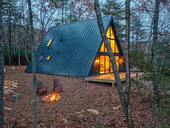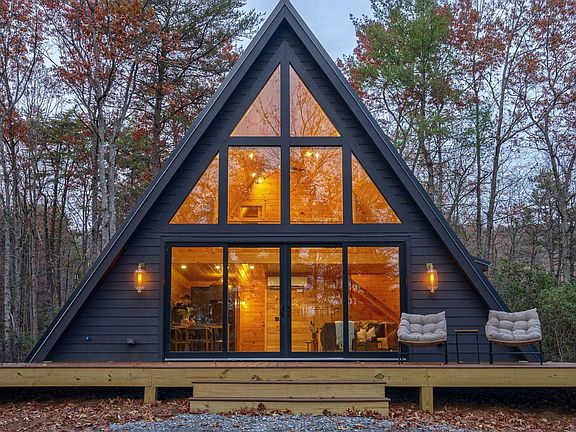 BRAND NEW totally private custom built A-Frame with NO HOA and short-term rentals allowed!! When you close your eyes and envision the year ahead, can you feel the magic of reconnecting with nature, breathing the crisp mountain air on 4 peaceful acres while listening to a rushing creek next to a waterfall? Imagine curling up in front of a fireplace for a midday nap on a chilly day, surrounded by natural light from a sparkling wall of windows. Maybe some passive income from a short term rental would take the coming year next level for you? Would you make more time for hosting your friends with the perfect indoor-outdoor space, delighting them with tasty treats from a gourmet kitchen with long range mountain views setting the scene? It's easy to decompress when surrounded by natural beauty, privacy and peace. Welcome to 2015 Old Parker Place! Enjoy 2 en-suite king suites + bonus loft, leathered granite & quartz countertops, natural stone tile, warm tongue & groove walls, thoughtful nooks & built-ins, designer lighting, countless smart features & 2.5 gb Fiber internet to keep you connected. You might feel like you're at a European Chalet when you kick back in the oversized lounge chairs on the deck and pop a bottle of Prosecco as the sun is setting. Just 25 minutes to Downtown Ellijay, this striking A-Frame is perfectly nestled on a level peak with easy access on paved county roads, main level living w just one step at the side door & gentle driveway!