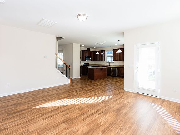 Main floor features a bright living room, dining area, a beautifully kitchen with ample cabinetry, a large island, and plenty of counter space.