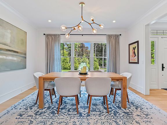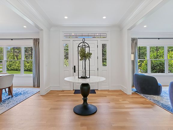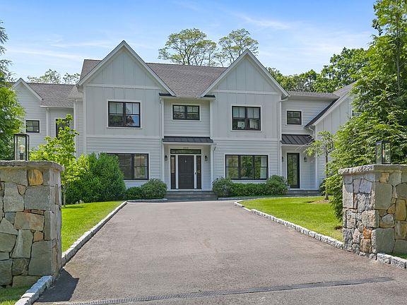 Majestically sited on 2 private acres of professionally landscaped grounds, this exceptional SMART modern farmhouse surpasses new construction standards with uncompromising attention to detail. This 5,500+ SF estate exemplifies architectural integrity with handcrafted millwork and bespoke finishes throughout. Superior craftsmanship shines in every detail-from rich white oak hardwood floors to custom built-in cabinetry and designer elements that create an atmosphere of refined elegance. At the heart of the home lies a spectacular kitchen featuring custom cabinetry, Wolf appliances, an expansive island perfect for entertaining, and stunning quartz countertops. The second level houses 5 generously appointed bedrooms, 4 full baths and 2nd floor laundry. The private Primary retreat complete with a gas fireplace features a spa-inspired bath with heated floors. The walkout lower level offers additional recreational space, including a custom-designed gym for fitness enthusiasts and a full bath that conveniently serves both the lower level and outdoor pool area. Step outside to discover resort-quality amenities, anchored by a saltwater pool surrounded by an elegant bluestone patio. The thoughtfully designed landscape architecture showcases mature specimen trees and carefully curated plantings that frame the residence in natural beauty. This luxury sanctuary represents the perfect synthesis of spacious grounds, complete privacy, and premium amenities-designed for the discerning buyer.