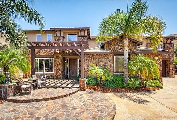 This Sunset Hills estate is the epitome of luxury. These 8 +/- acres, sitting high at the top of a cul-de-sac, providing picturesque views of the San Timoteo Canyon & a calming air of privacy. This home's spacious, open floor plan provides 4,100 square feet to live, relax, & entertain. You'll appreciate the immaculate design, including timeless wood flooring, carpet, & beautiful tile throughout. The kitchen features lovely granite countertops & a matching island. With 4 bedrooms, 3.5 bathrooms, & various living areas you'll have plenty of space for family & guests. The stunning backyard was designed 4 entertaining & relaxing, featuring two covered patios, a BBQ area & greenhouse. The pool is incredible, reaching 9'3 at it's deepest, & the accompanying spa is the perfect way 2 relax after a long day. When you're not relaxing, the dedicated home office w/ built-in desk & cabinets makes working from home both comfortable & attractive & don't worry about keeping the lights on late, this home includes a 72-panel solar system, & owned. Other important features include the 3 car garage & the plentiful storage. In addition to the home itself, you'll enjoy a desirable neighborhood in close proximity 2 many amenities including a short walk, run, bike ride, are the San Timoteo Nature Sanctuary, Franklin Park, & the Creekside trail. The perfect location 4 an active lifestyle. Awake 2 beautiful sunrises & relax under breathtaking sunsets. The memories made here will be cherished forever.