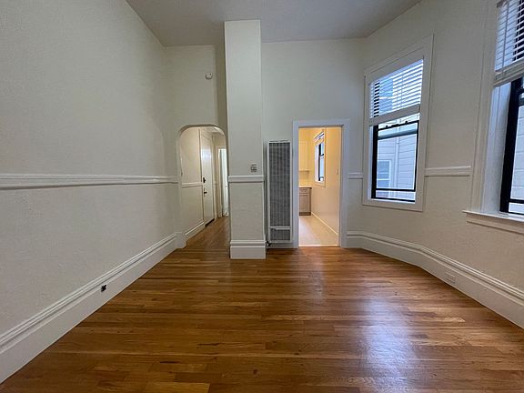This charming studio is a must see! Its petite layout offers a sizable main room, cozy, newly remodeled kitchen and updated bathroom with shower. The kitchen offers many cabinets and a gas stove. The unit boasts high ceilings, large windows and hardwood floors. Be sure to make time to take a tour! The buildings common areas have tons of San Francisco charm with original intricate ceiling decor and is situated directly across from Lafayette Park. Enjoy tennis, views of the city or blanket in the grass during a beautiful SF day!