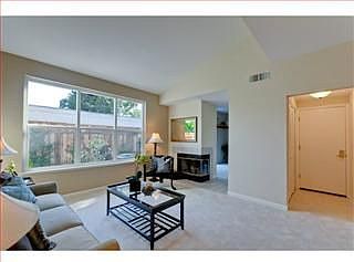 Contemporary Elan townhome - Light, bright 1,407 sq ft with large den that opens to patio & garden. Freshly painted interior,new carpet. Cathedral ceilings,skylights & abundant natural light. Large kitchen with lots of counter & cupboard space. Stay cool with central air-conditioning. Inside laundry hook-ups. Attached 1 car garage with lots of built-in storage. Private location in rear of complex.