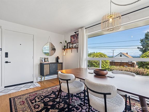 Charming 1,331 sq ft Rambler in the heart of Bremerton’s coveted Manette waterfront community. This 3-bed, 1-bath home features tasteful updates while preserving the original hardwood floors. The full bathroom has a jetted tub and brand new flooring. Nestled in a serene neighborhood, it offers low-maintenance landscaping and a fenced backyard, with a magical outdoor living space perfect for relaxation or entertaining. Enjoy views of Mount Rainier, Puget Sound, Seattle skyline including the space needle and passing Bremerton-Seattle ferries from this idyllic retreat. A blend of classic charm and modern comfort within easy walking distance to the Manette restaurants and shops as well as Bachmann Waterfront Park straight down the hill!