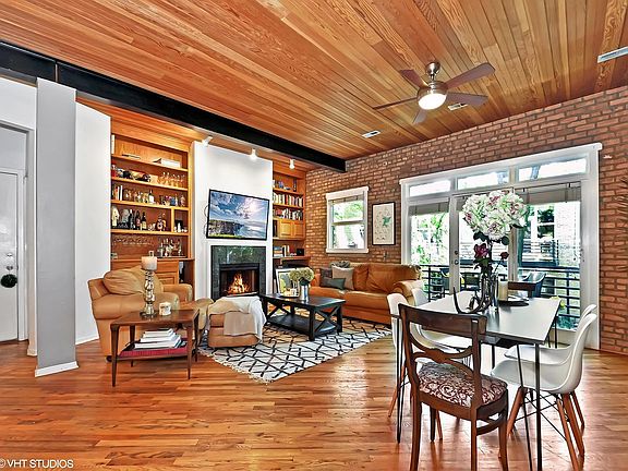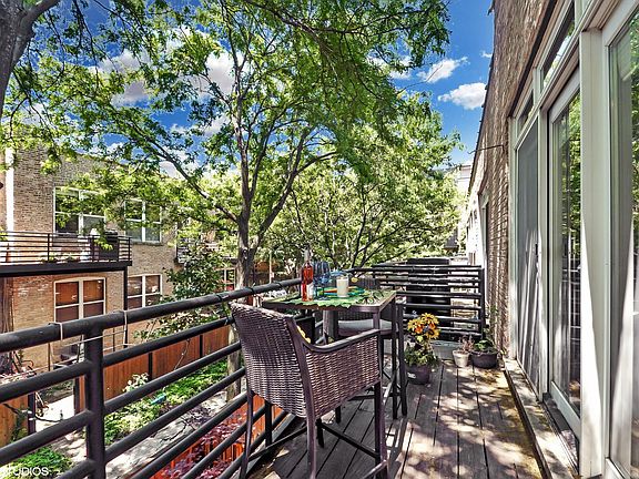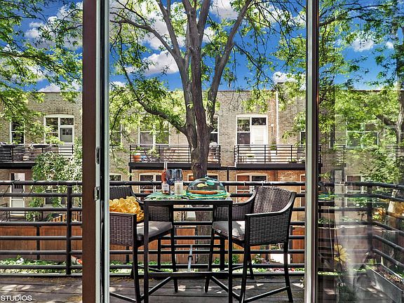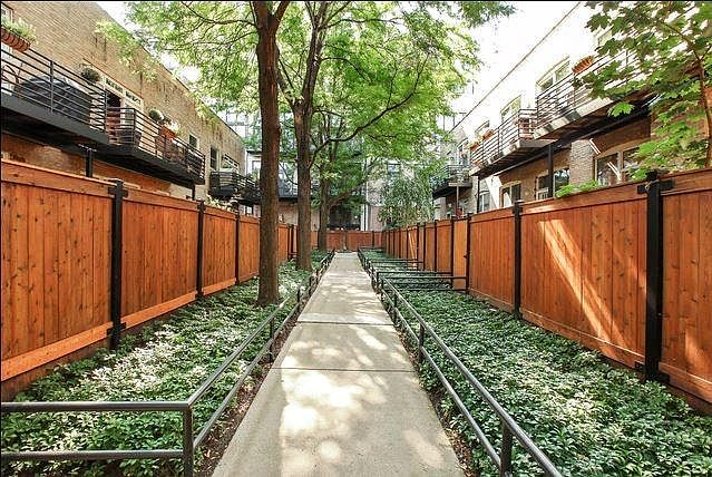 Bucktown timber loft with 10 foot high ceilings, exposed brick in a beautiful courtyard setting. Floor to ceiling windows, wood-burning fireplace, large private balcony overlooking a tranquil lush landscape. Gleaming oak hardwood floors throughout. Open Floor plan, with modern kitchen features 7 foot long white quartz island, white cabinetry and stainless steel appliance package. Large master suite with customized walk-in-closets with barn doors! In unit W/D. Massive 5 X 10 storage room, common rooftop with incredible skyline views, fitness center, bike room. Walk Everywhere.. Work, Dining, Shopping and Entertainment. Steps from 606 entry, Damen Blue Line & Metra and SO much MORE!! 48hrs notice to schedule ; Owner: $650 Non-Refundable Move in fee ; Building: $250 Move-In/Out Fee ; Elevator $500 refundable deposit ; No Pets/Smokers ; Tenant responsible for utilities. Parking Space #54 included ; Storage Space B203 Included.