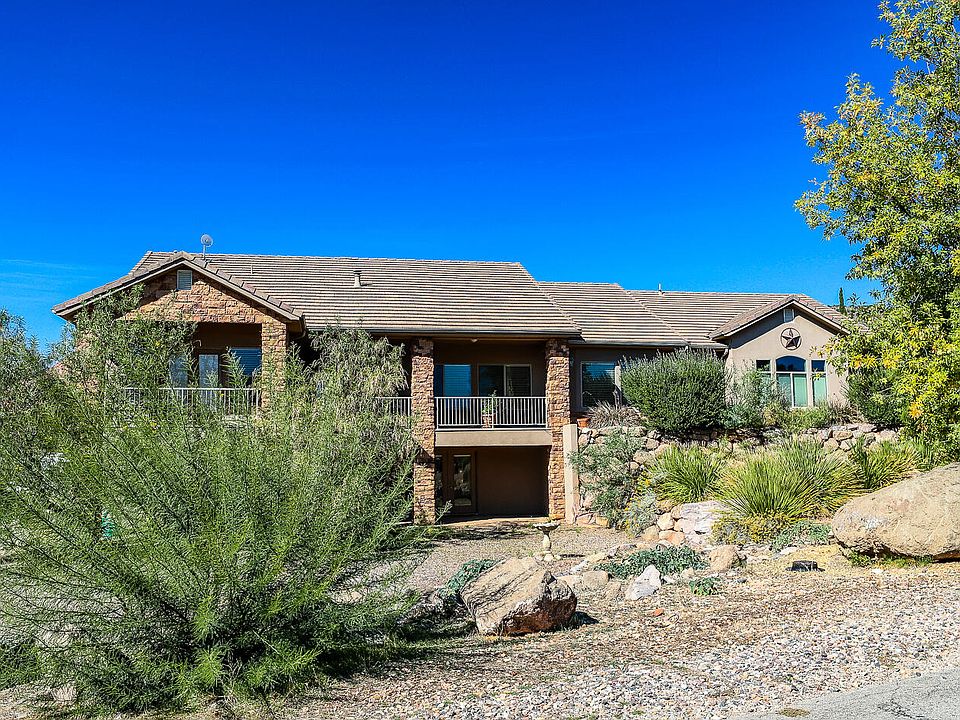 Beautiful Silver Reef. Southern Utah's hidden gem. Surrounded by National Parks, nature is your playground. This house is equipped with lots of extras. Solar panels, 11 month old Generator, 2nd family room, Wood Floors in all bedrooms, Green House, 12x15 Shed, Lots of room for RV parking, Pull down storage in the garage, 16 month old New A/C Unit, nearly 1727 square feet of covers porch and decks, and others that you must see. Not unusual to see wild turkeys on the property as well. And get out those cactus jam recipes, you're going love it! This is your opportunity to live and thrive in the quaint little town of Leeds. Million Dollar views at no extra charge. Some furnishings available for purchase, just ask your realtor to inquire if you are interested.