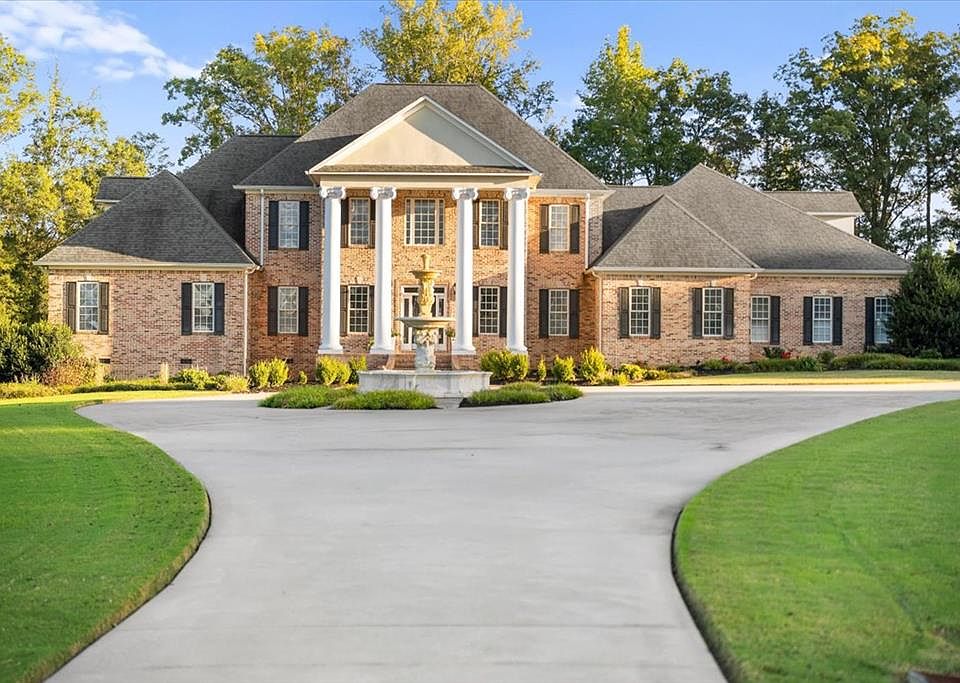 Driving into the circular drive, you're welcomed by this gorgeous estate with a large front fountain, inviting front porch and manicured front lawn. Inside, a dramatic double staircase sets the tone to this two story living room, where floor to ceiling windows showcase views of the gorgeous pool with heated sauna plus the landscaped backyard oasis with pool house with a bath and sitting area with firepit, to enjoy cool evenings. The open concept design flows into the gourmet kitchen with custom cabinetry, dual pantries, quartz counters, and top of the line appliances plus large counter space for extra seating or ample space for serving. You also have a separate dining as well and large den with fireplace overlooking the outside living space that has a wall of windows for plenty of light.