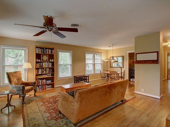 Shaded by towering mature trees this Mid Century gem is peacefully situated on a quarter of an acre. You will find it hard to believe how spacious and serene the home feels. The ample family room with restored hardwoods has wonderful views. There is an easy flow to the kitchen. Absolutely incredible park-like backyard with a covered patio and two storage sheds. Wonderful laundry room with work and storage space, master has two closets. Many, many updates to the home including windows & roof, updated electrical system, interior and exterior paint, window blinds, pedestal sinks, kitchen appliances, garage door & opener. In the heart of the city, yet a world away this is a perfect little nest to call home!