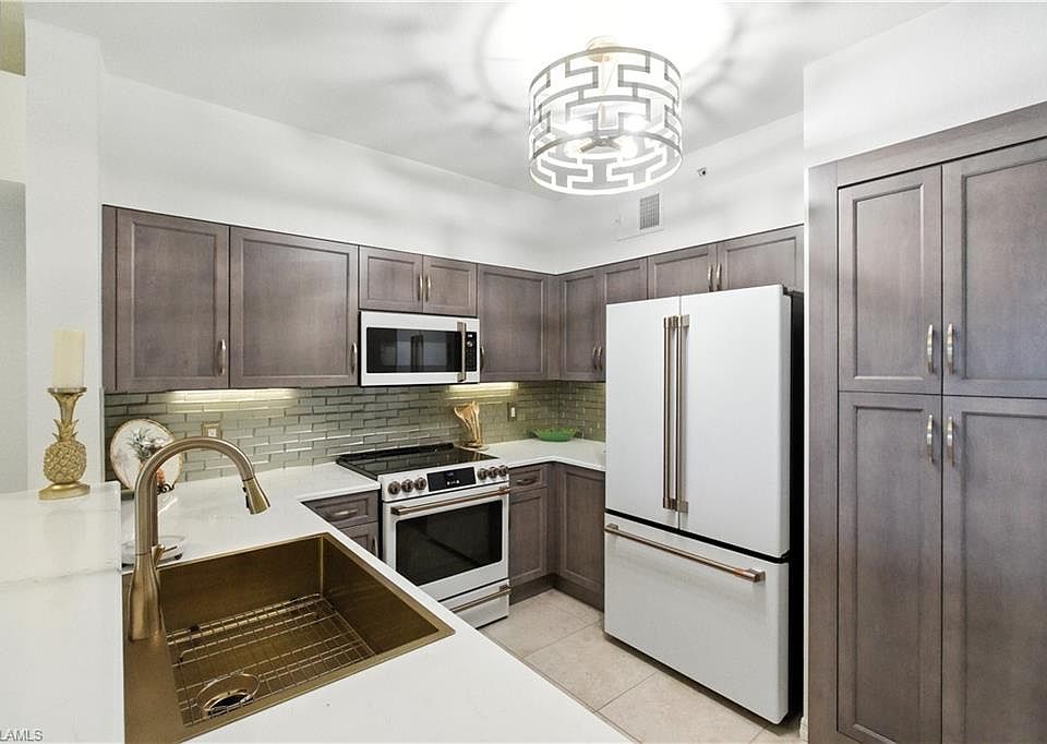 Check out this move-in-ready 3-Bedroom w/Den, 2-Bathroom Condo with Stunning Views | 1,828 Sq Ft | Fully Furnished. Offering style, comfort, and convenience in a picturesque waterfront setting. Enjoy peaceful lakefront views in this beautifully appointed 2nd Floor condominium, ideally located in the desirable Estero area. You will love the serene sunrise, and cool afternoons sitting on your lanai or viewed by the Primary bedroom, Living area and Den- perfect for both relaxation and entertainment. This home offers a great room and split bedroom floor plan highlighted by vaulted ceilings, elegant lighting, Hunter Douglas motorized blinds, tropical ceiling fans and Gladiator garage shelving system, neutral tile flooring in the main areas and carpeted bedrooms for added comfort. The updated kitchen boasts Quartz countertops, new cabinet doors, a reimagined Pantry with cabinet-style storage, and Café-brand matching appliances. A bar seating area adds to the kitchen's functionality and flow. The primary suite offers a spa-like retreat with a large soaking tub, dual sinks and fine finishes, a separate walk-in shower, and a spacious vanity area. Two additional bedrooms, a second bath, a laundry area, and a versatile den complete the home. Additional features include: Air Conditioner & water heater installed 2024, newer Washer/Dryer, Fully furnished with modern, tasteful décor. Villagio is a gated community directly on 3 Oaks Pkwy that features 2 pools, a movie theater, a wine bar, a cafe, fitness, library and community room, along with community grills. Included in your HOA dues are water, sewer, trash, middle cable package and internet. Close to great elementary, middle and high schools, Florida GulfCoast University, GCTC, Miromar Outlets, area beaches, SWFL International Airport, I-75, dining, and entertainment. NOTE: New assessment paid in full.